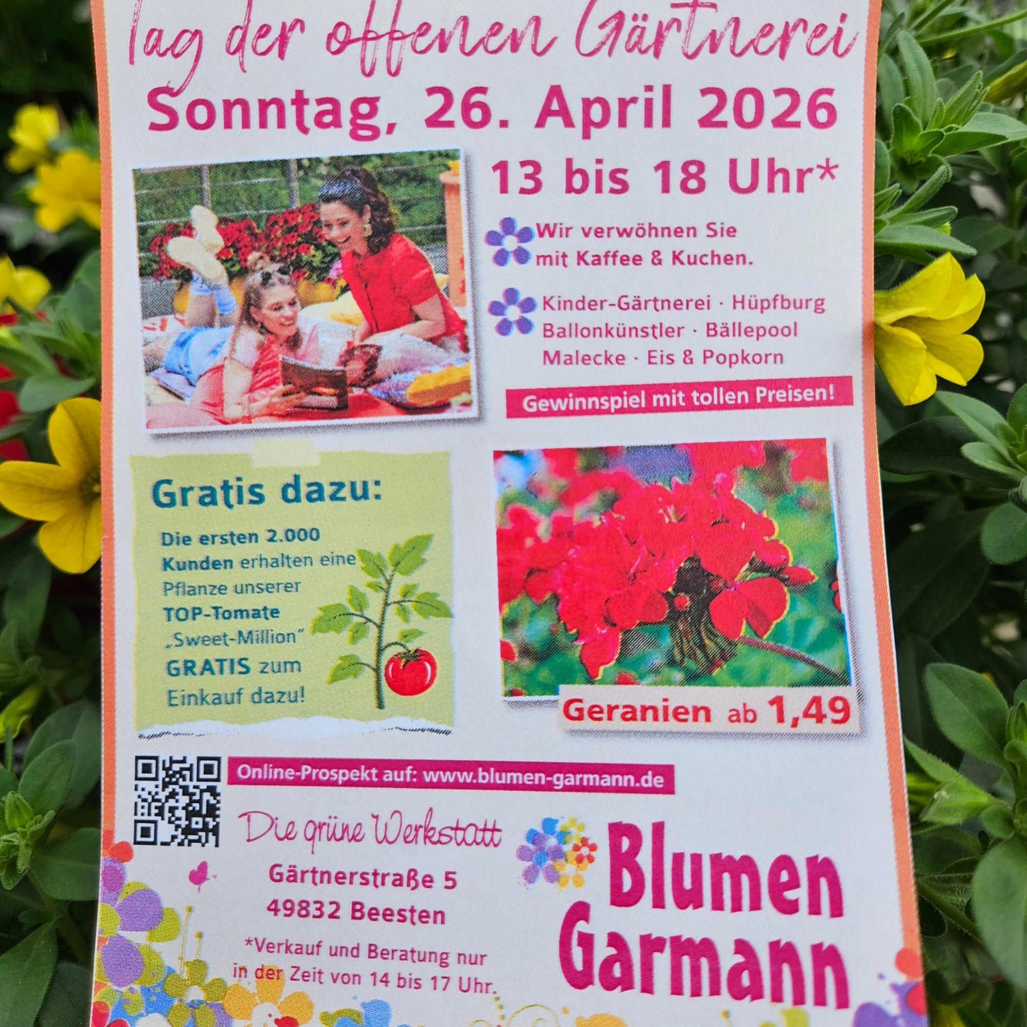 TAG DER OFFENEN GÄRTNEREI🌷🌷 Erlebe Natur hautnah🌸🌸 Wir öffnen unsere Türen und laden euch herzlich ein,einen Blick hinter die Kulissen unsere Gärtnerei zu werfen. 🌼Das erwartet euch: 🌷Einblicke in unsere Pflanzenwelt 🌼Große Auswahl an Blumen und Pflanzen 💐Tipps und Tricks rund ums Gärtnern ☕️Gemütliche Atmosphäre,bei Kaffee und Kuchen vom Förderverein der Grundschule 📆Wann:Sonntag 26.4.26 Bringt Familie und Freunde mit und genießt gemeinsam einen blühenden Tag .🧡💛🌷 #blumengarmann #beesten #sommerblumen #auseigenergärtnerei